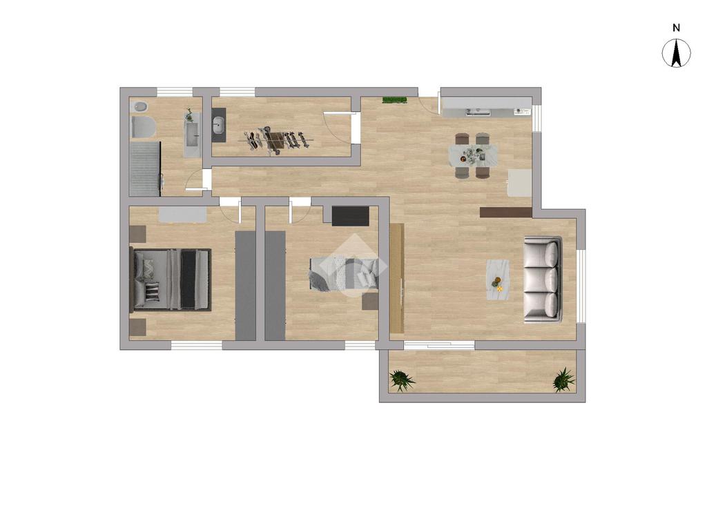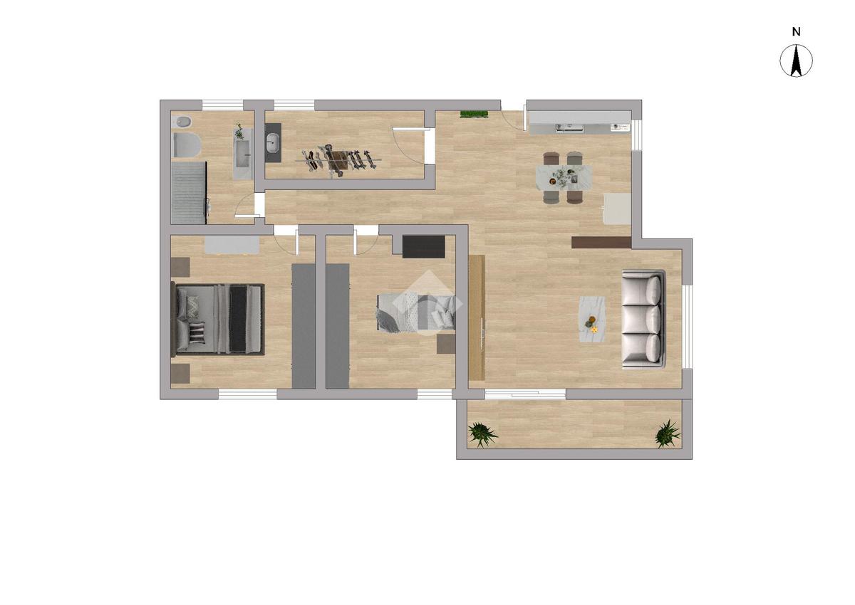 Entrando troviamo un'ampia e luminosa zona giorno con cucina lasciata a vista e sfogo su un comodo balcone. All'ingresso è presente è presente anche un locale lavanderia/ripostiglio, pratico e spazioso.