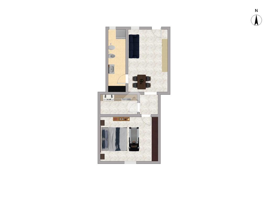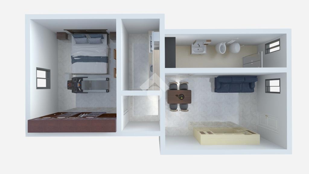 L'appartamento è posto al primo piano ed è così composto: luminoso soggiorno, cucinotto separato, spaziosa camera matrimoniale e bagno finestrato con doccia.