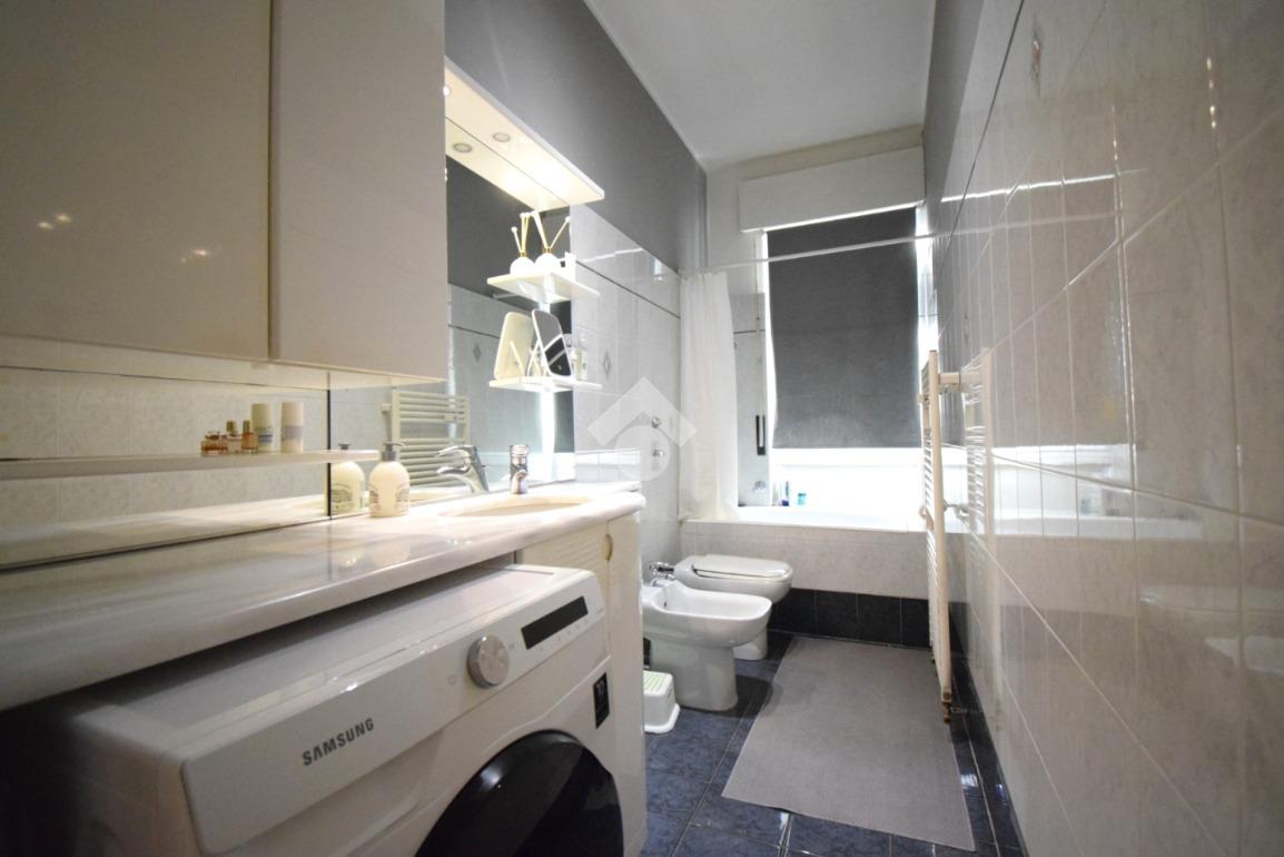 Spaziosa camera matrimoniale e bagno finestrato con vasca.